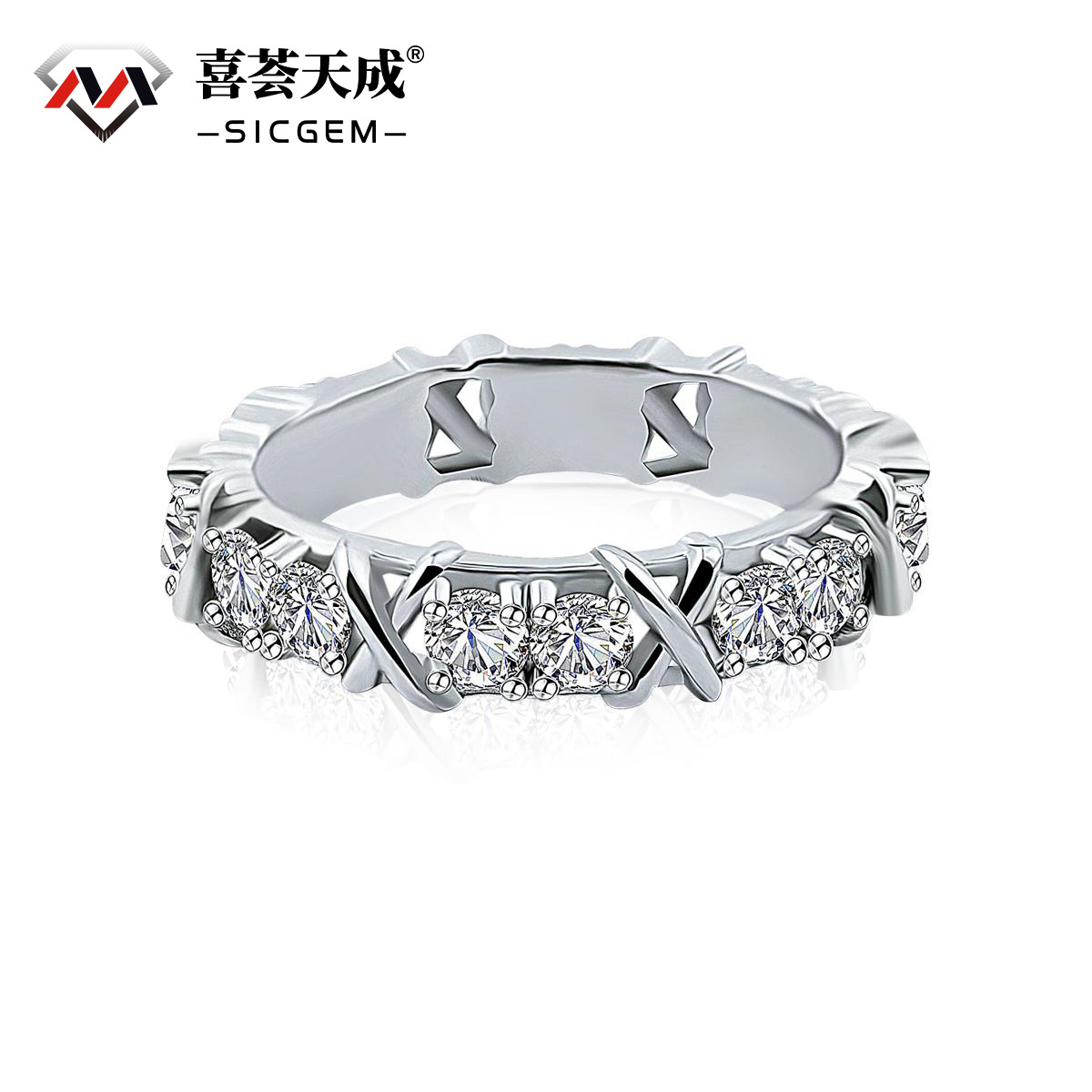 S925 VVS Synthetic Moissanite Hip Hop Cross Eternity Ring Wedding Anniversary Gift for Men Women