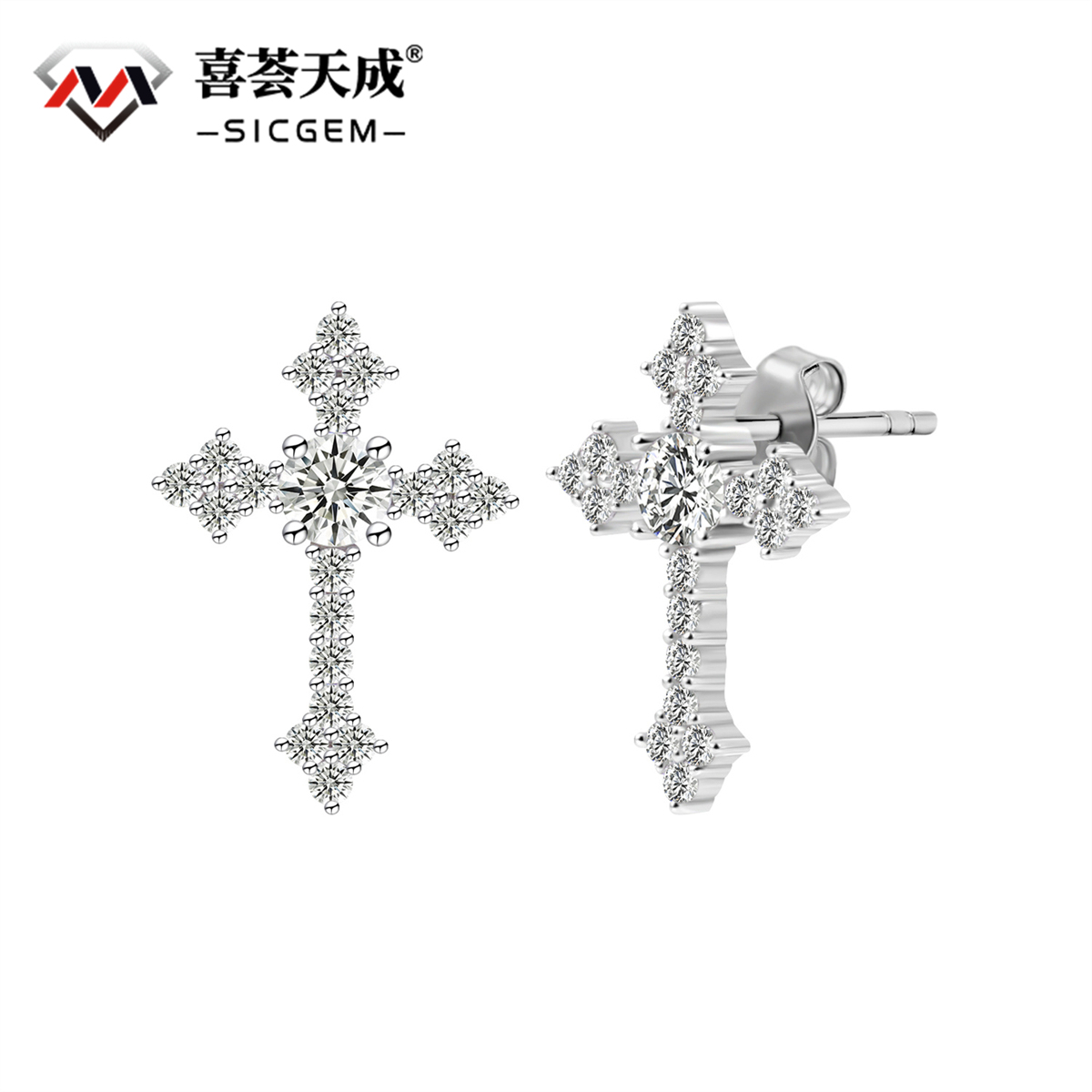 Made of S925 sterling silver, these cross stud earrings are the perfect blend of elegance and trendiness. With D Color VVS Synthetic Moissanite stones that pass the tester, sparkling from all angles. Suitable for both men and women, these earrings are a must-have for any jewelry collection.